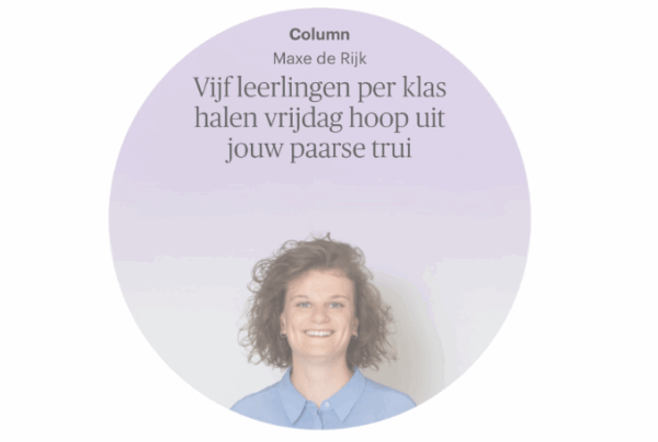 Soms weet je het niet als docent. Moet je zelf te veel verwerken om de verstandige, alleswetende juf uit te hangen. Ik reageerde op leerlingen die mij appten, checkte het nieuws, en probeerde contact te zoeken met de familie. Meer kon ik niet doen, dacht ik. Maar toen vroeg een leerling of ik het nare nieuws in de groepsapp van de klas wilde zetten. Ik twijfelde. Maar ze drong erop aan: “Iedereen weet het al een beetje juf, maar dan kunnen we elkaar helpen.” Ik checkte alle feiten nog een keer en plaatste het bericht – met lichte tegenzin én met de nadruk op het goede nieuws over R. zelf – in de appgroep.